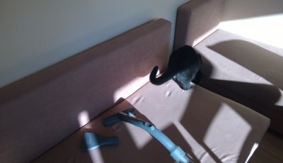 - Când sunteți satisfăcut de efect, opriți aspiratorul și priviți mai atent suprafața canapelei, ca să vedeți dacă mai există multe fire de păr de pisică. Wow! Blana este într-adevăr colectată și aspirată în aspirator!