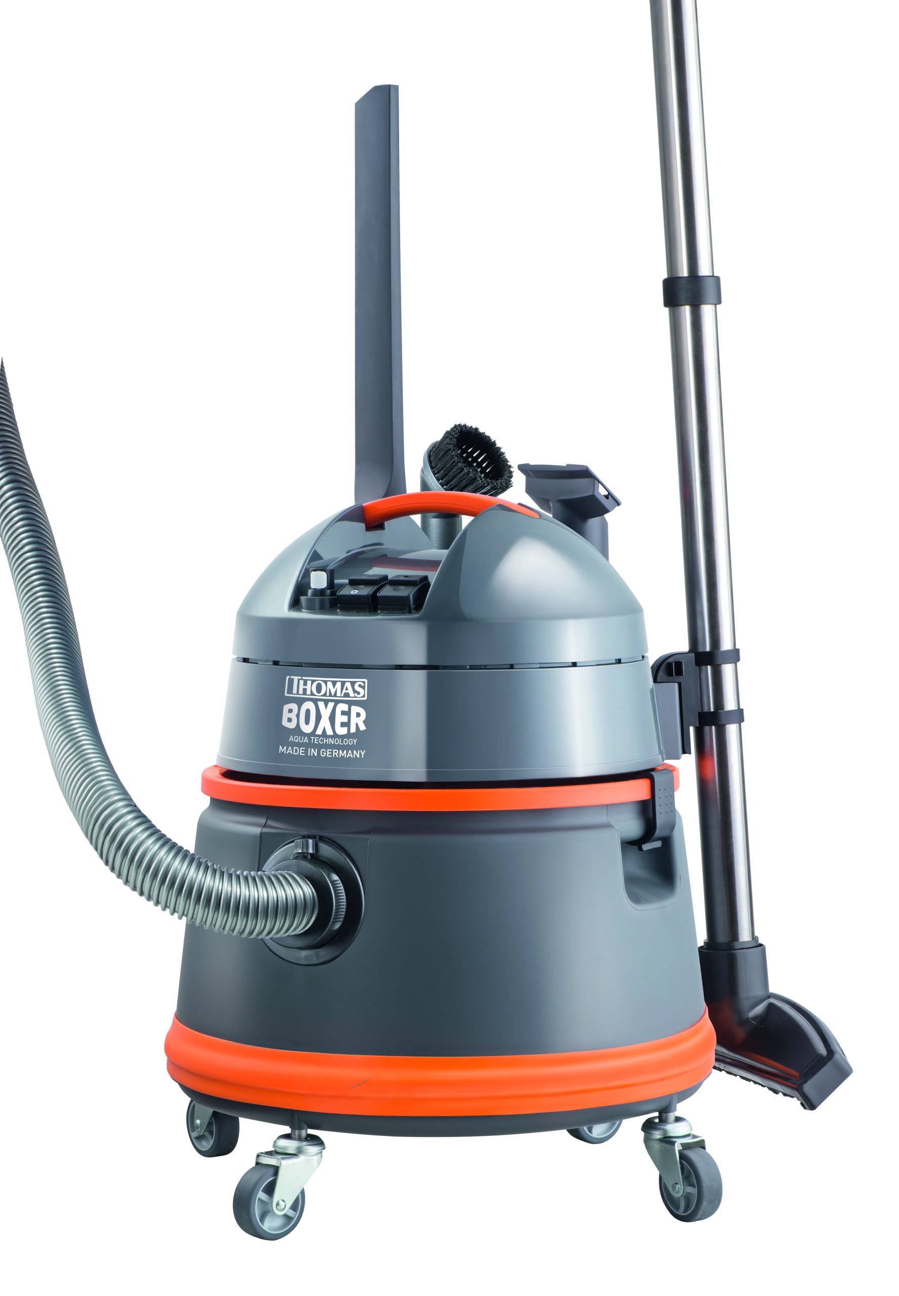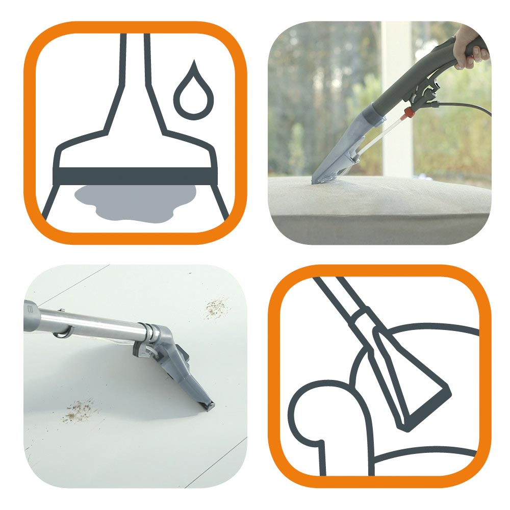 Un aparat de curăţat premium cu capacitate mare pentru stăpânii de animale, proprietarii de autovehicule şi persoane cărora le place să bricoleze. Curăţare comodă şi rapidă în garaj, maşină sau în casă. Îndepărtează perfect firele de blană, urmele de noroi, curăţă covoarele şi canapelele. Este potrivit şi pentru colectarea apei vărsate. Accesorii speciale, roţi masive, rezervor de 20 litri, putere 1400 W. Tot ce aveţi nevoie pentru a face curat în interiorul şi exteriorul casei.